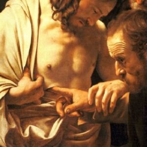W dniu zmartwychwstania apostołowie spotykają żyjącego Jezusa. Tomasza nie ma z nimi. Świadectwo pozostałej Dziesiątki jest dla niego niewystarczające. Ich świadectwo: „Widzieliśmy Pana!” /J 20,25/, nie jest wystarczające, by przezwyciężyć traumę Wielkiego Piątku.